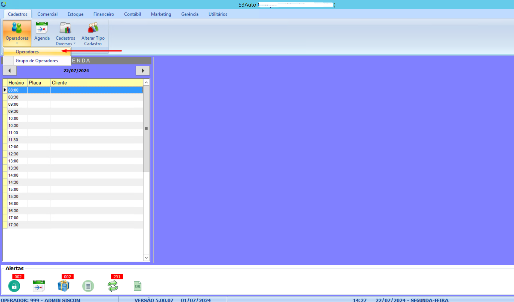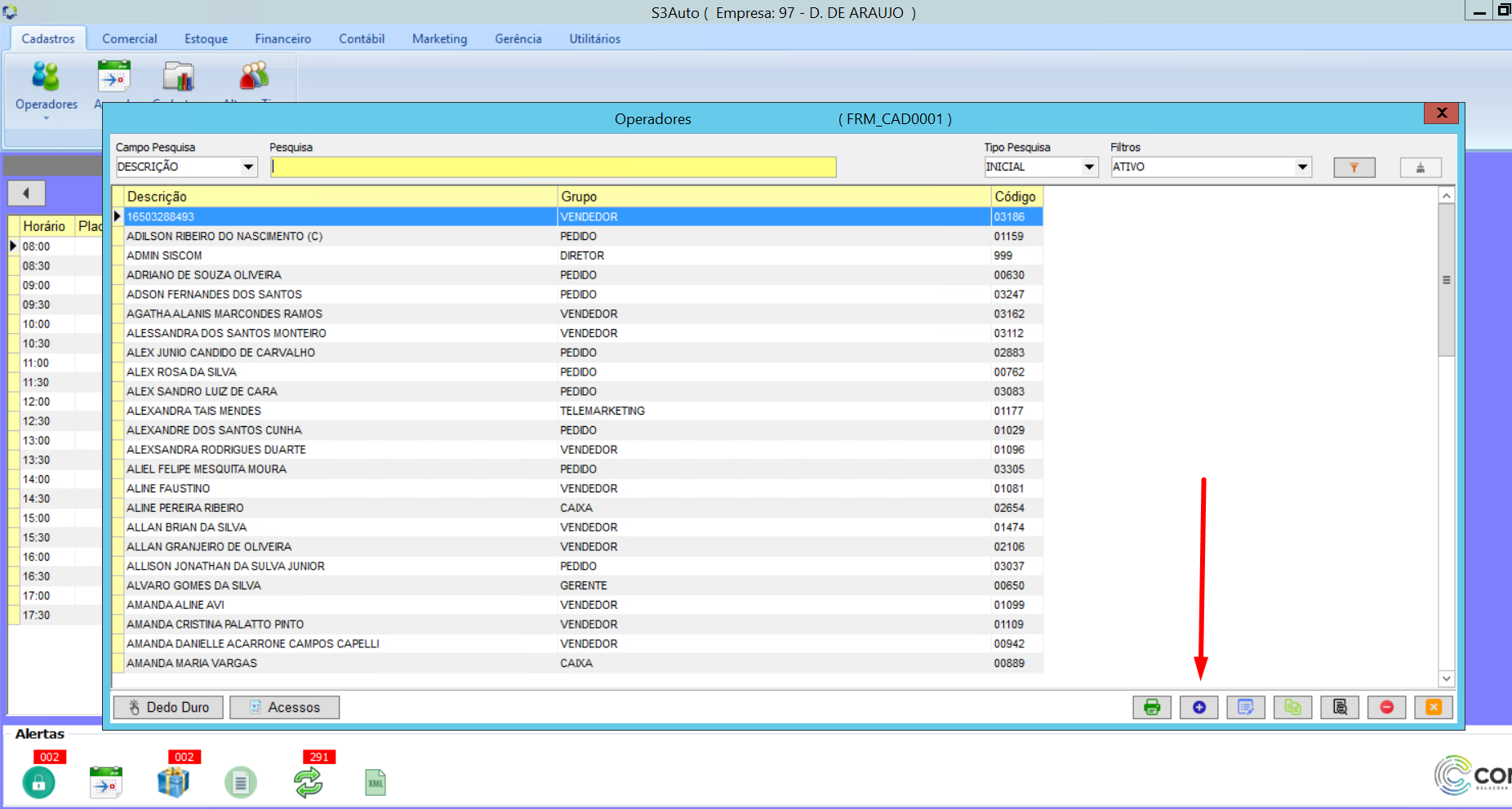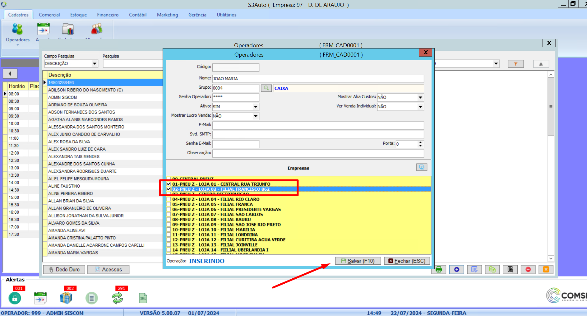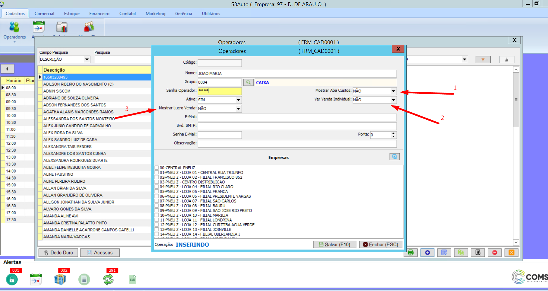 Cadastros>Operadores>Operadores.