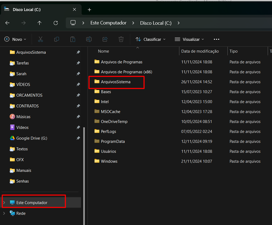 Com o extrato do banco em extensão OFX, salve na pasta ArquivosSistema.